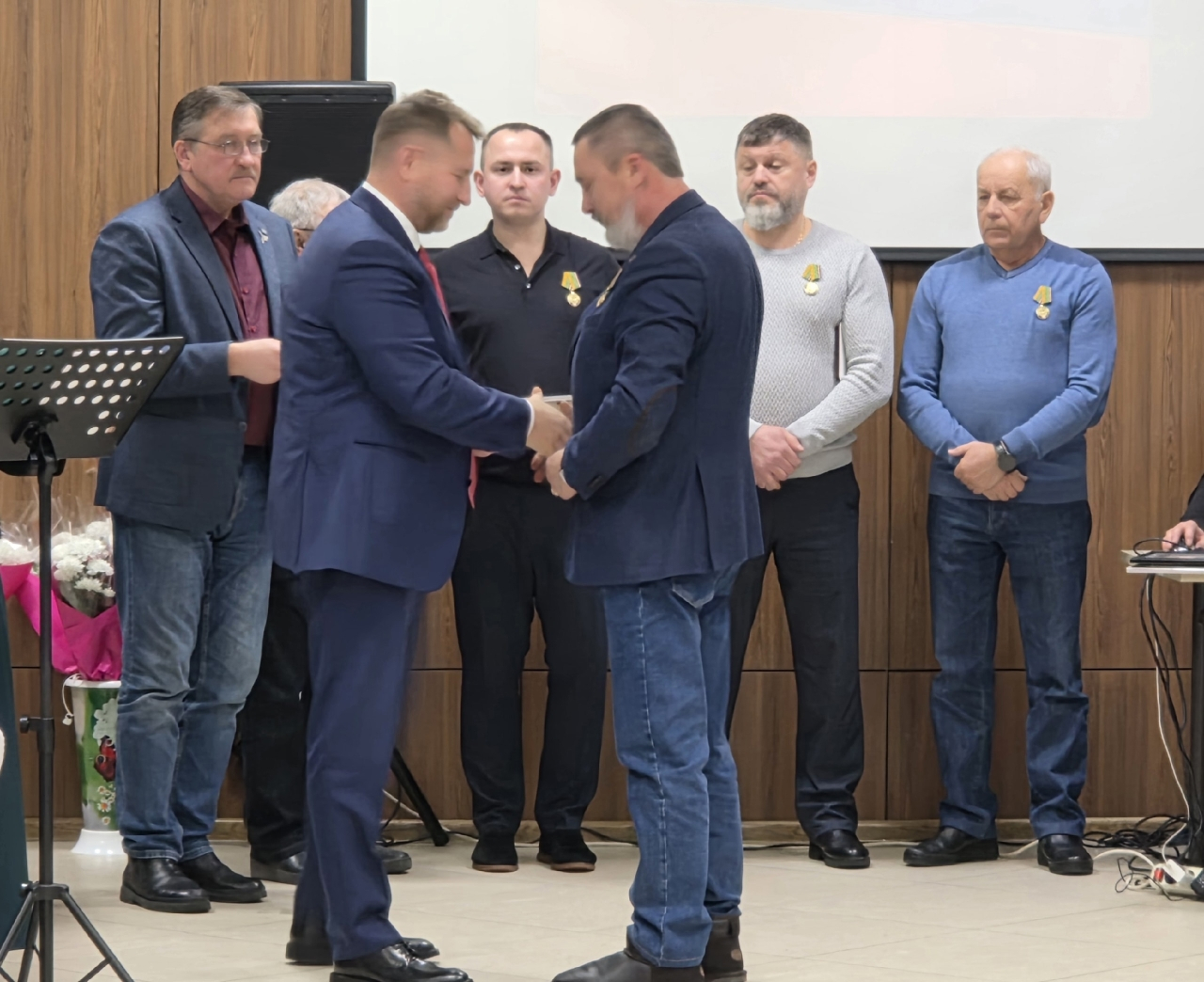Депутат Брозовский совместно с председателем Думы Березовского муниципального округа Алексеем Горевым вручил участникам встречи медали «За помощь фронту», «За содействие СВО», «За вклад в победу в специальной военной операции», а также благодарственные письма с фронта.