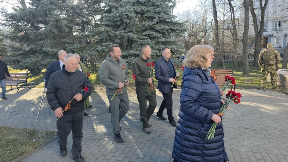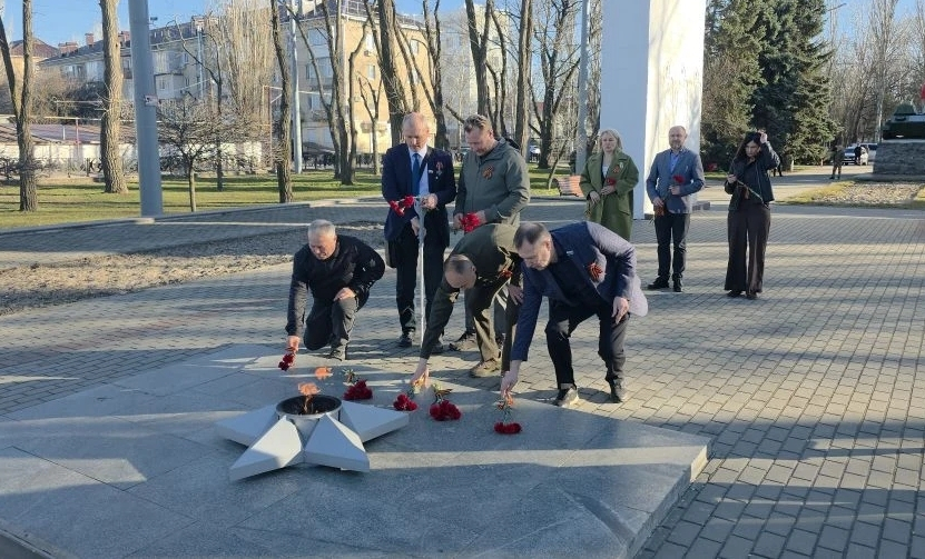 Члены делегации приняли участие в церемонии возложения цветов к Вечному огню и стеле «Мелитополь – город воинской славы». Депутаты почтили память погибших, в том числе свердловчан, во время освобождения Мелитополя от немецко-фашистской оккупации во время Великой Отечественной войны.